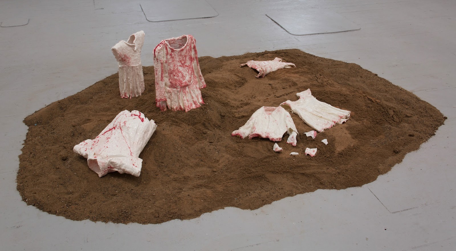 For instance, I created a series of fragile sculptures, born out of my deep emotional response to the vulnerability of children in war zones. inspired by this sense of vulnerability. They were placed at the centre of a space—delicate, breakable, partially buried in sand. People had to walk around them carefully. These pieces were shaped by my grief and horror at witnessing the suffering and loss of innocent lives.It was a way to say: We are fragile. We need care. Some sculptures were already broken. Some were still standing. I wanted the work to speak to that pain, to acknowledge it and hold space for it so that it is not forgotten.
