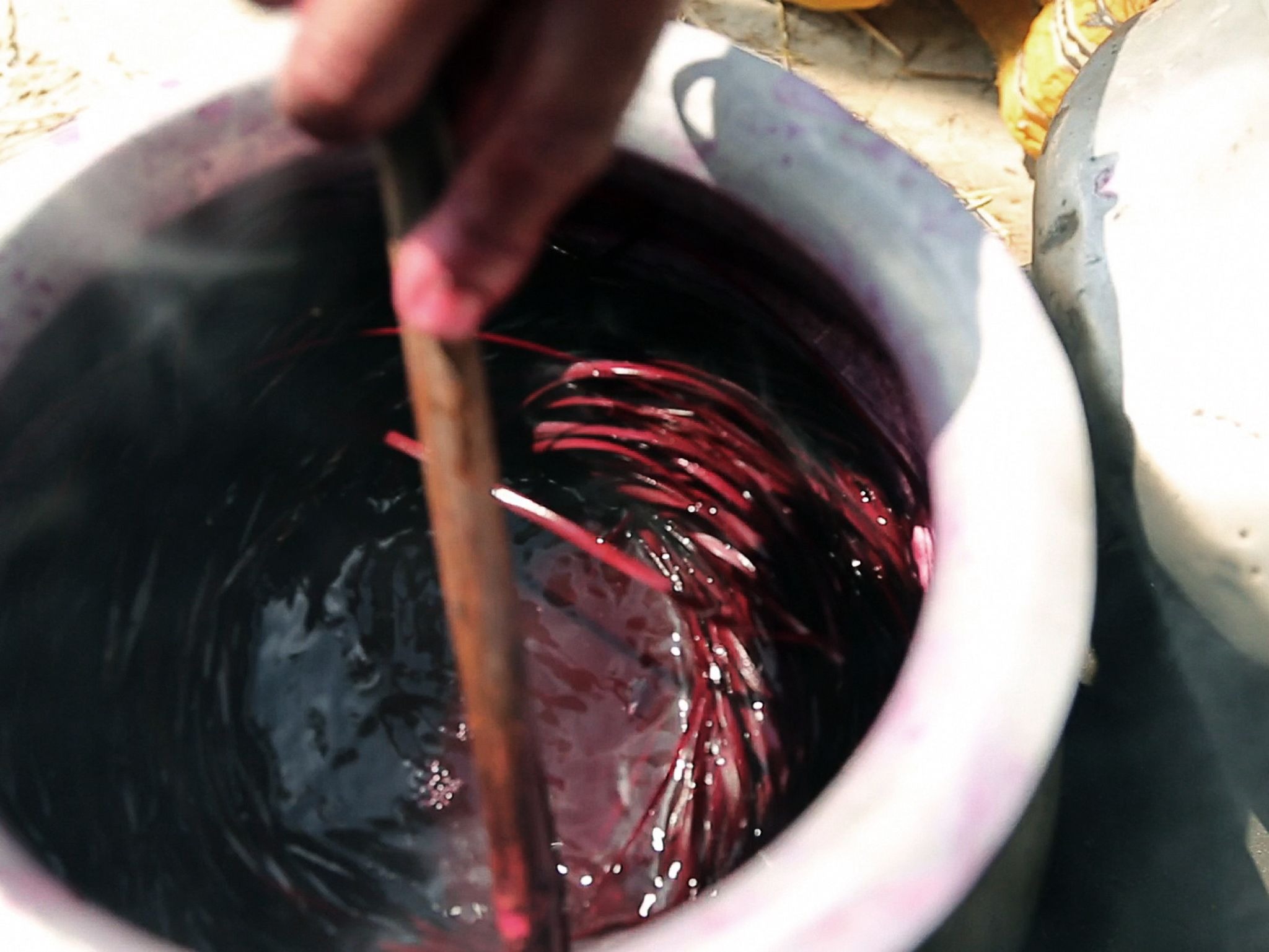 Once the murta is collected, its stems are cut, soaked in water, and tied into bundles. The bundled wicks are then boiled in rice starch and different leaves like amra, jarul, tamarind, and cowpea. This is done to make them shiny and durable. The bundles are also boiled in natural or synthetic dyes for the vibrant designs that are so loved.